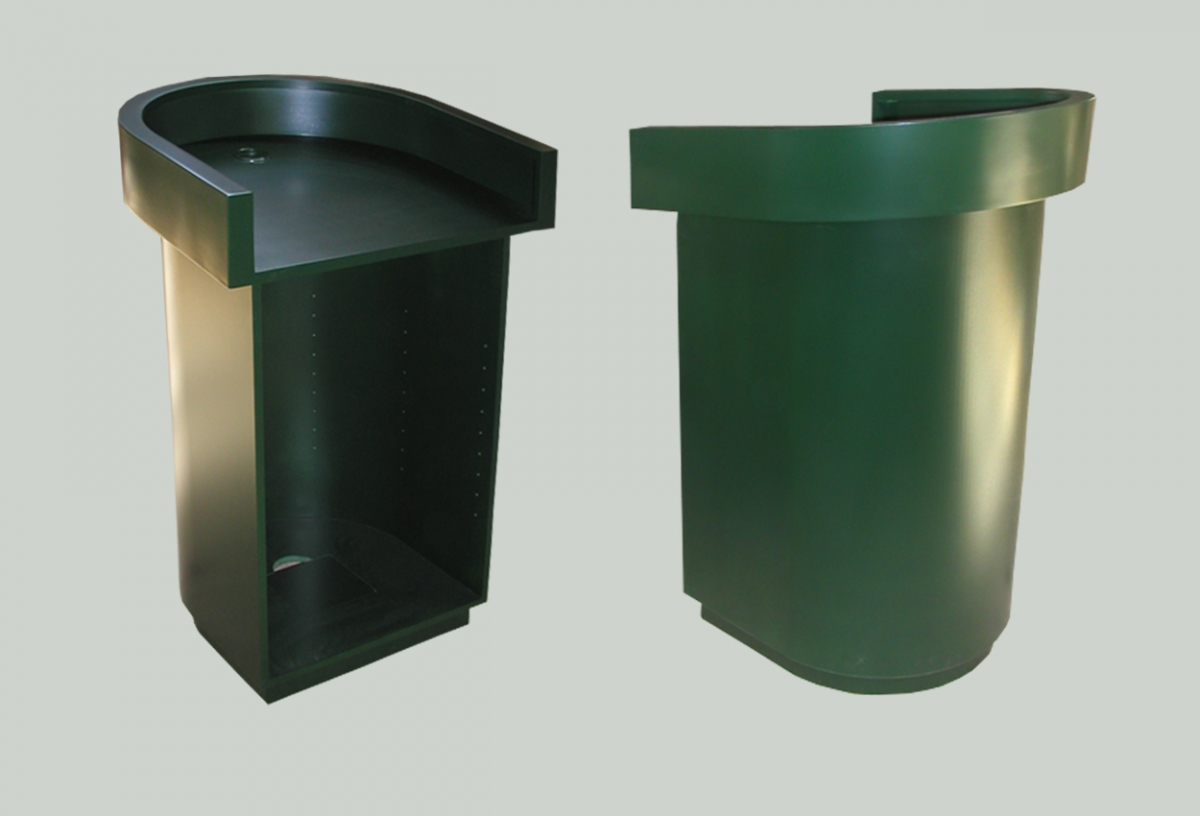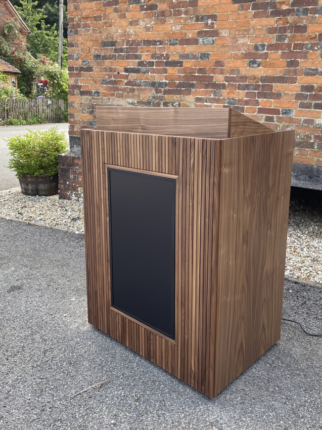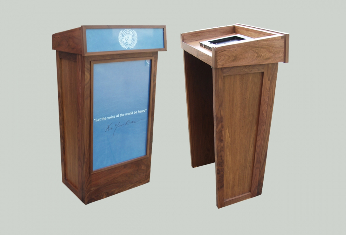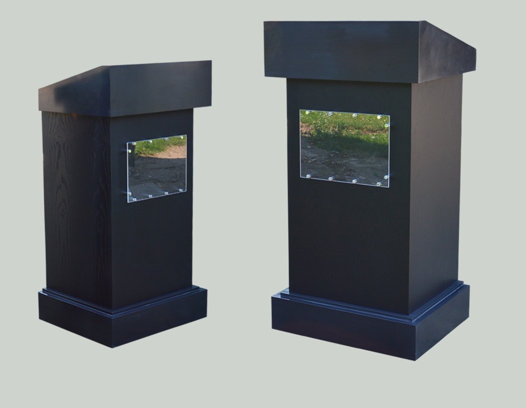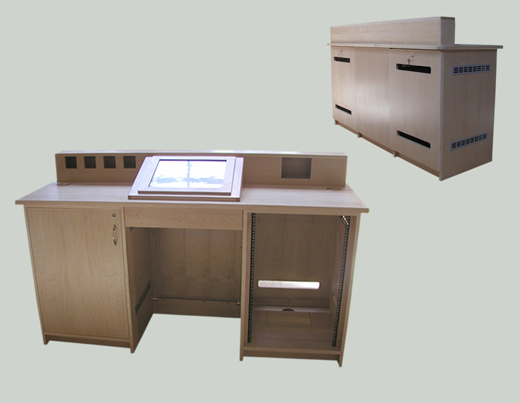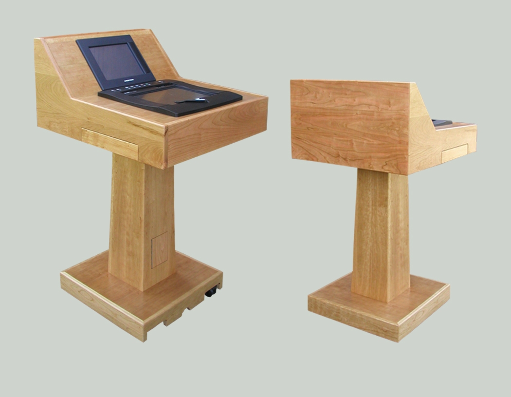 Presentation lecterns and podiums are designed to complement the specific location and the technical requirements of the installation. This often involves fitting microphones, equipment racks and touch screens within the lecterns. The ability to have the script surface rise and fall can be incorporated by the installation of an electric lift.